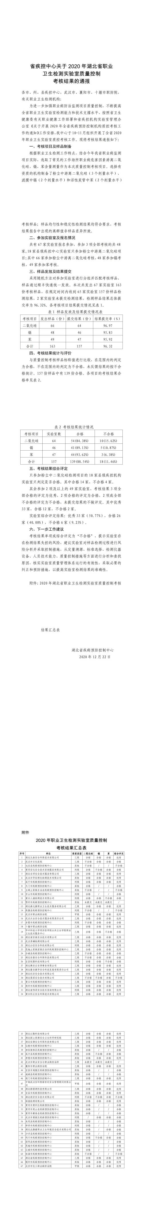 關(guān)于湖北公信安全科技有限公司參加2020年度湖北省職業(yè)衛(wèi)生檢測(cè)實(shí)驗(yàn)室質(zhì)量控制考核結(jié)果的公告